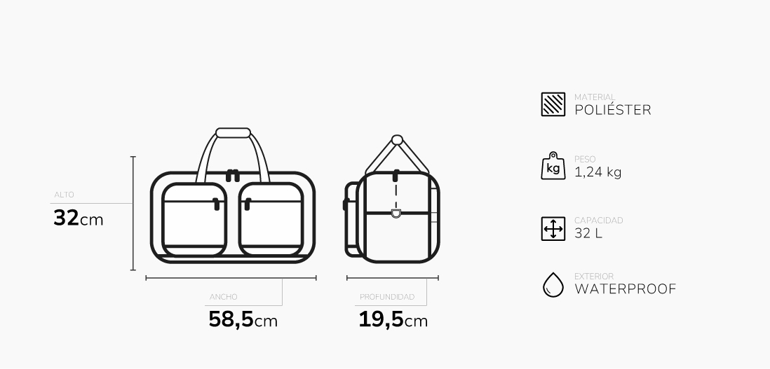 - Doble manijas: Ofrece distintas formas de agarre para utilizarlo como bolso.
