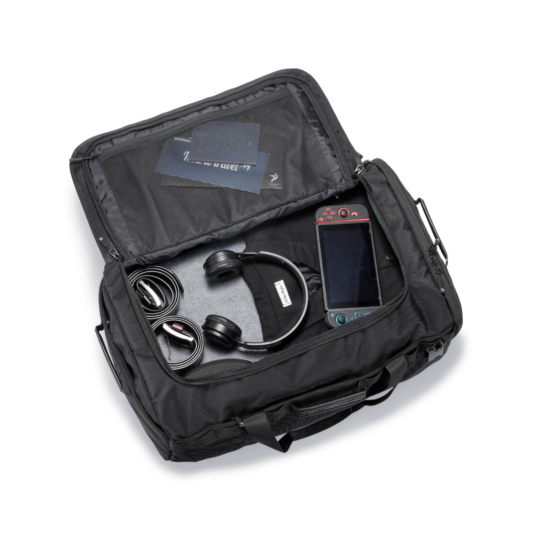 Permite abrir la mochila por completo con la practicidad de un bolso.