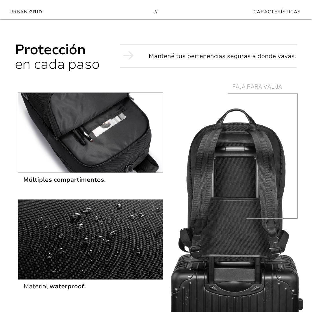 La mochila GRID combina un diseño elegante y sobrio con una estructura resistente y funcional. Ideal para quienes buscan practicidad sin perder sofisticación, su estética minimalista y formal se adapta perfectamente al ámbito profesional y urbano.que se adapta a cualquier entorno. Su estructura innovadora y materiales de calidad la convierten en una opción ideal para el día a día.