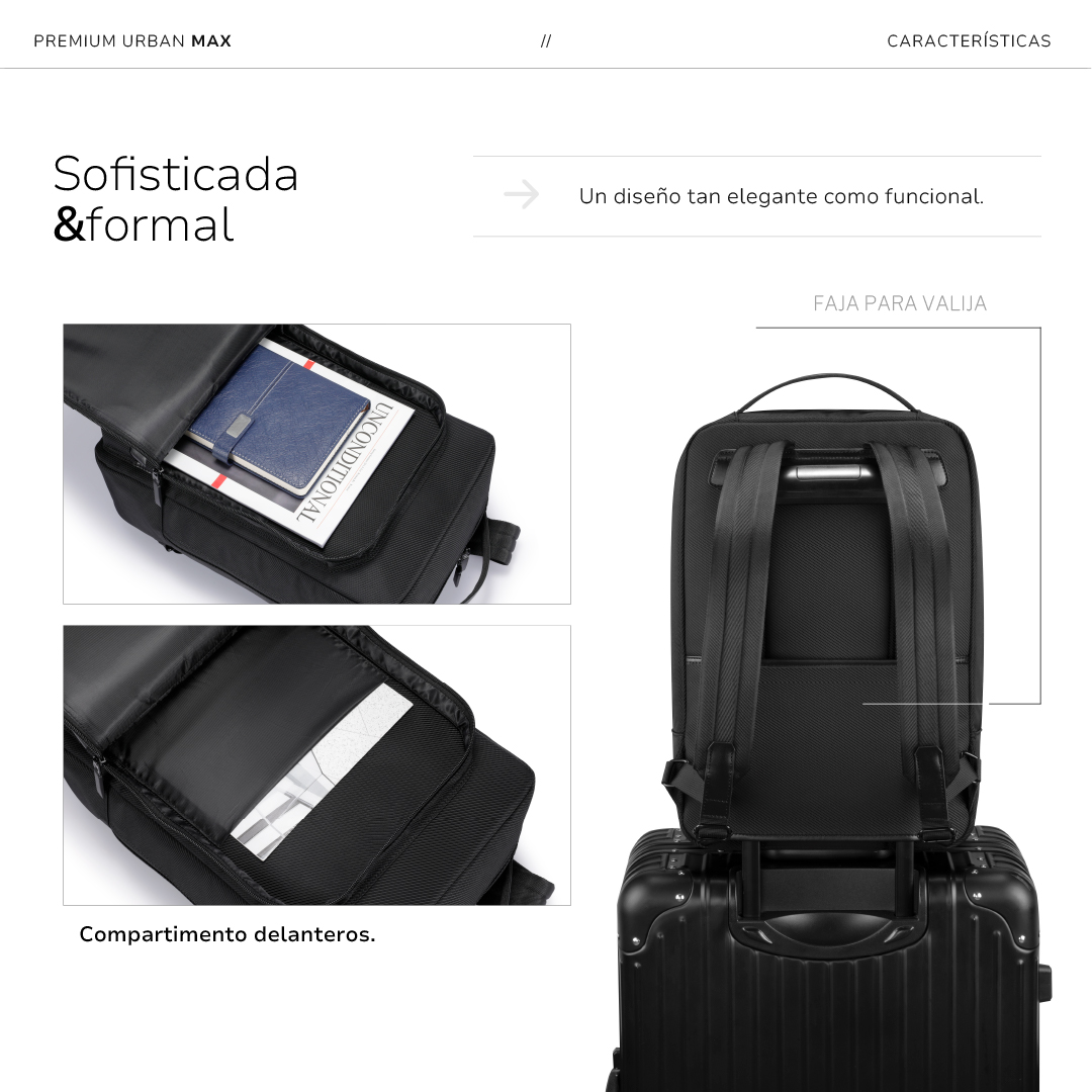 Con líneas limpias y una estructura bien organizada, MAX proporciona acceso rápido a tus pertenencias mientras mantiene un perfil estilizado. Su confección en material resistente e impermeable garantiza durabilidad y protección en todo momento.