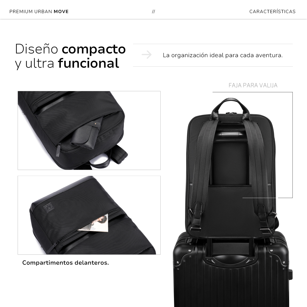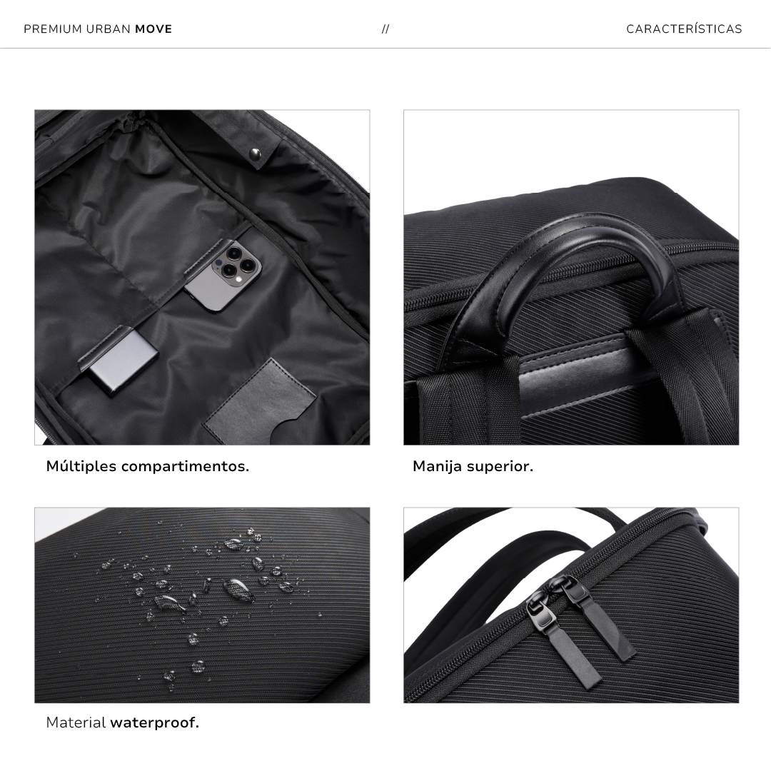 - Múltiples bolsillos internos : Espacios dedicados para dispositivos, accesorios y objetos personales.