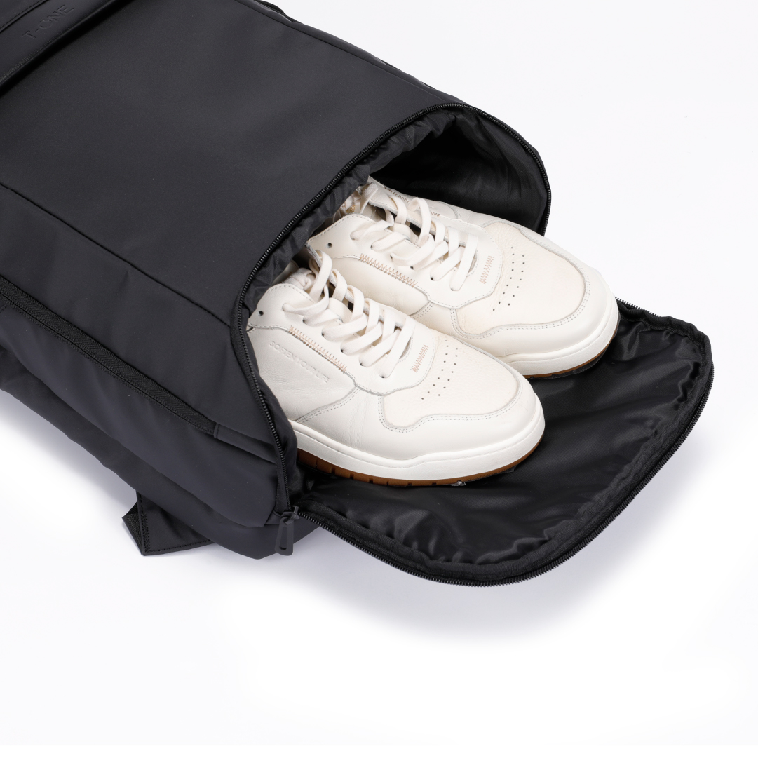 Un espacio separado ideal para llevar zapatillas u otros accesorios sin afectar el resto del contenido.