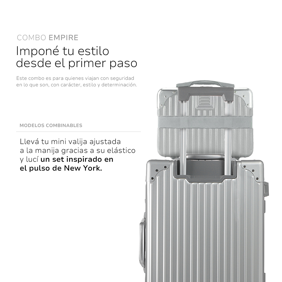 Con este combo no solo estás listo para viajar. Estás listo para marcar estilo, imponerte con elegancia y moverte con la comodidad que necesitás en cada trayecto. Empire no es un combo. Es una declaración.