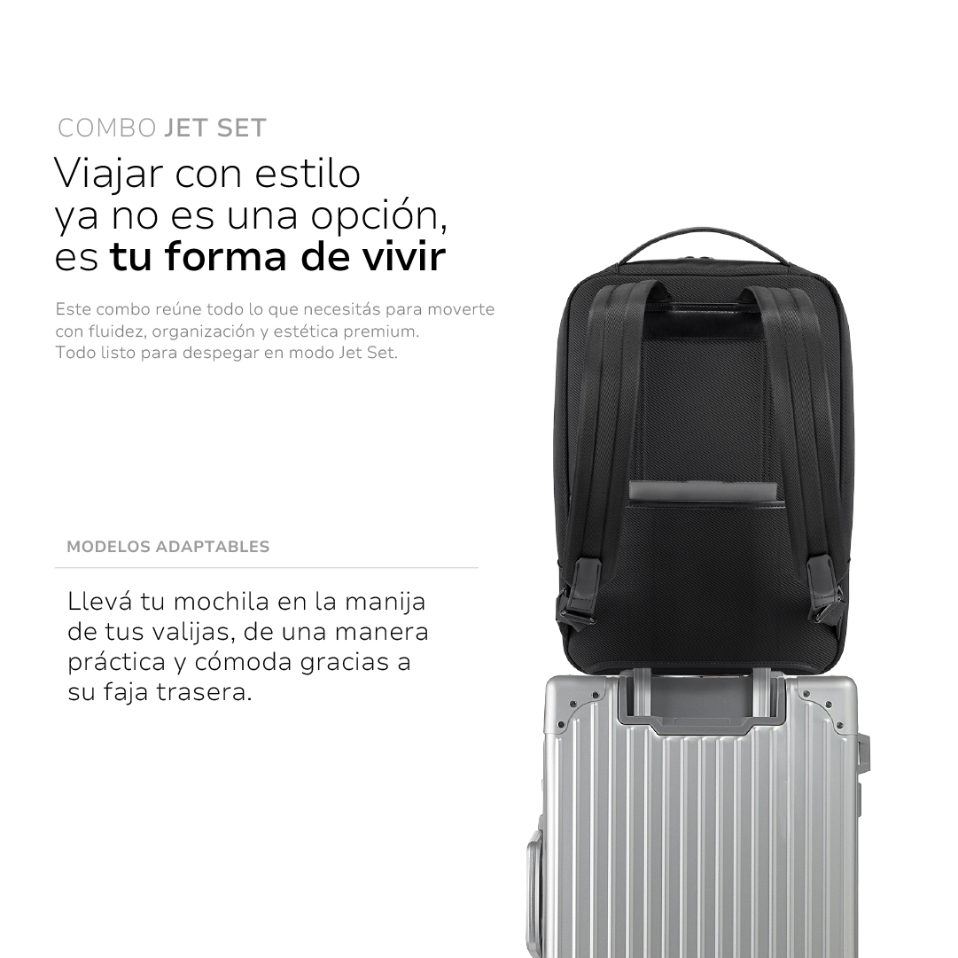 Viajar con estilo ya no es una opción, es tu forma de vivir. Este combo reúne todo lo que necesitás para moverte con fluidez, organización y estética premium. Todo listo para despegar en modo Jet Set.