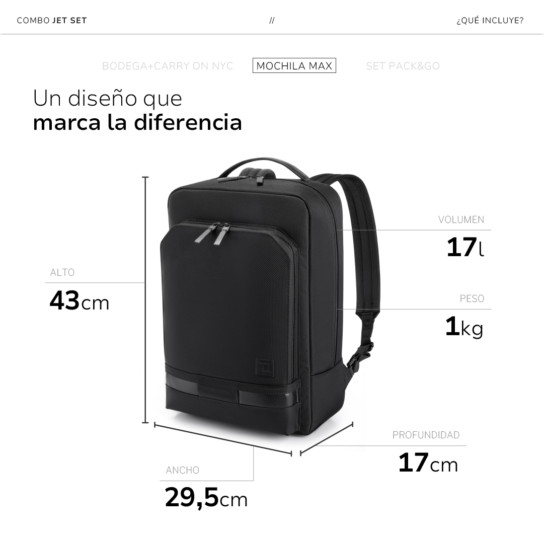 Set Jet Max - Valija Bodega NYC + Carry On NYC + Mochila Max + Organizador de regalo