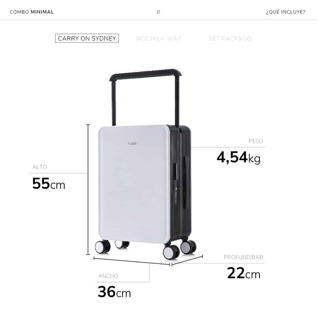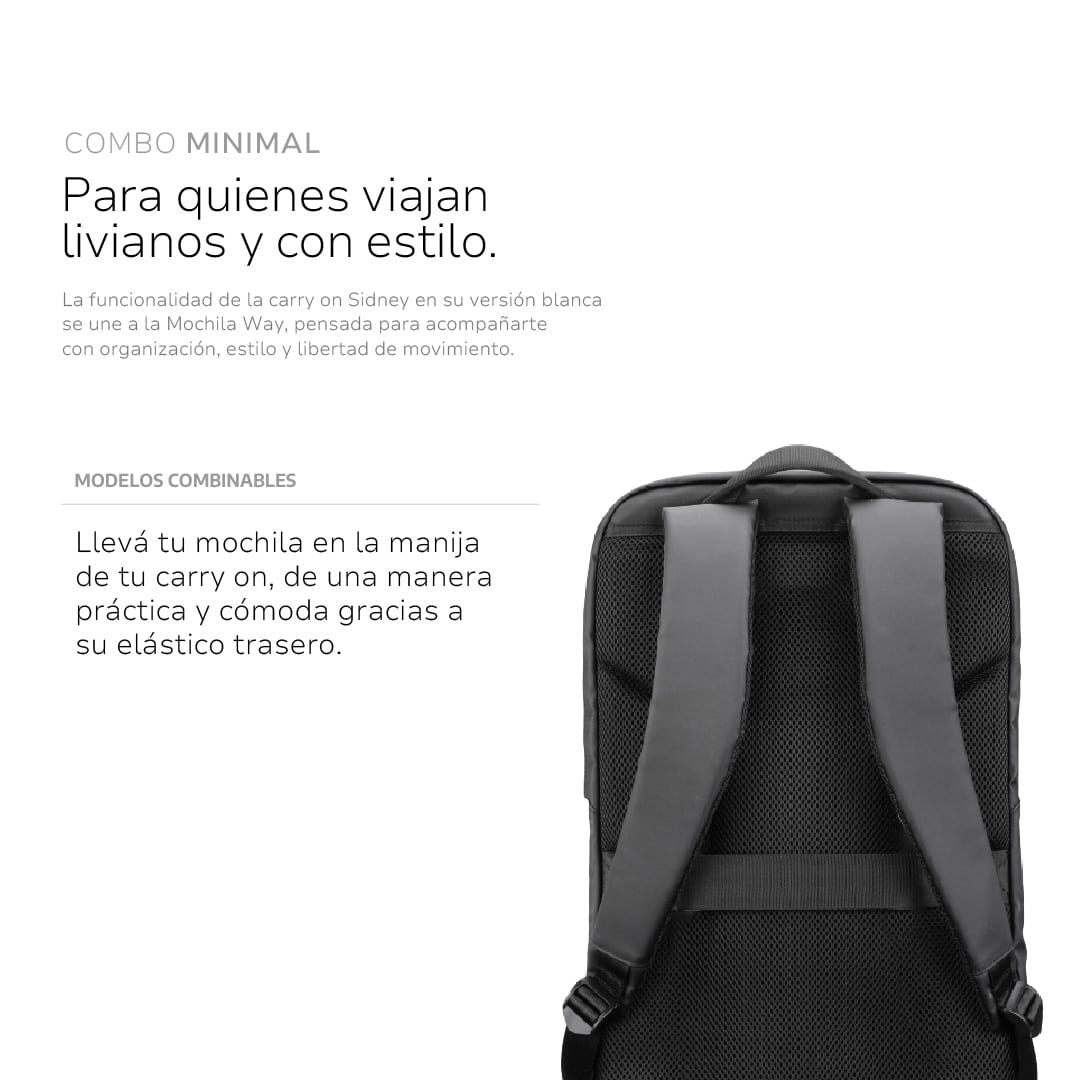Set Minimal – Valija Sidney Carry On Cabina Blanca +Mochila Urban Way + Organizador de regalo