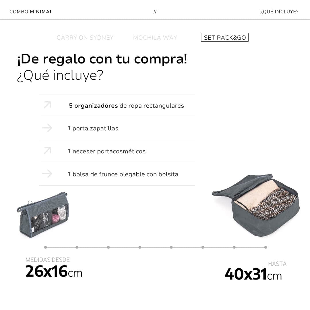 Este combo está pensado para quienes viajan livianos pero no resignan estilo ni funcionalidad. La combinación perfecta entre una carry on elegante y una mochila urbana versátil, para que cada salida sea simple, organizada y con mucha onda.