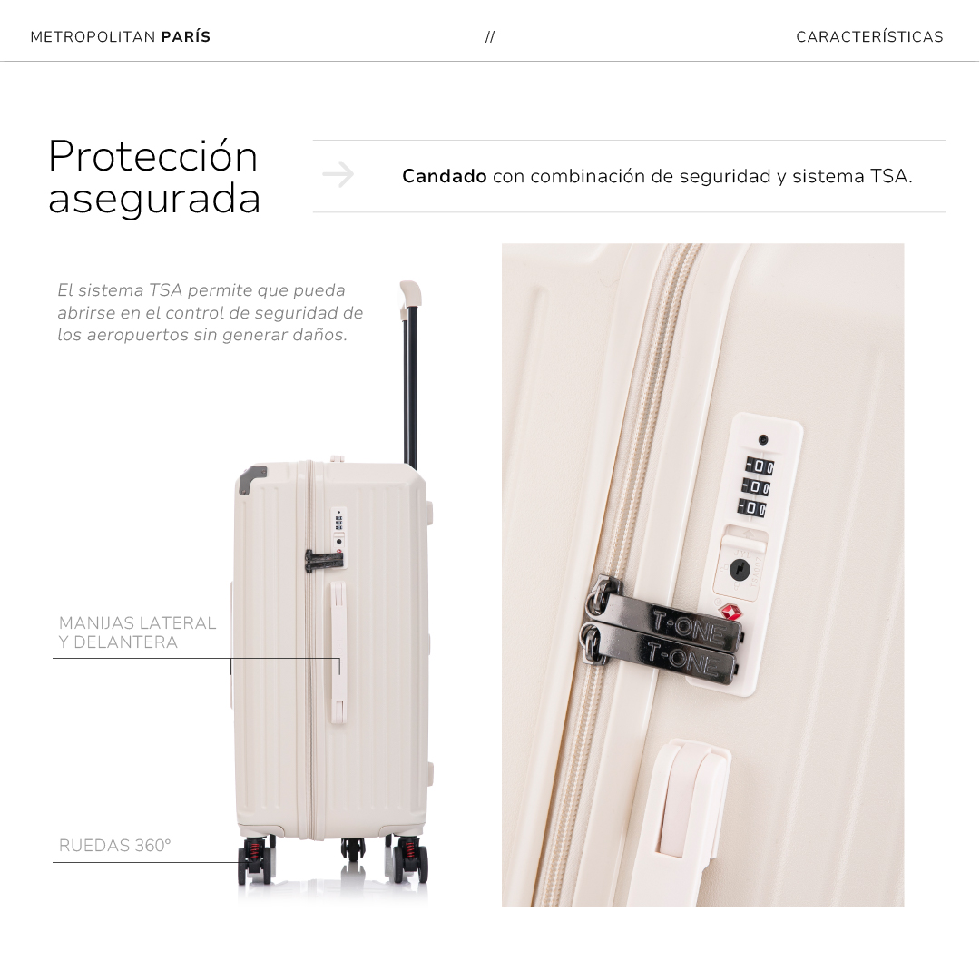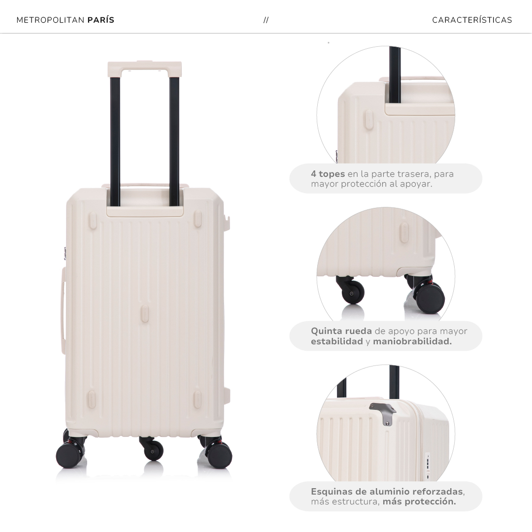 - Topes traseros para apoyar la valija sin dañar la superficie.