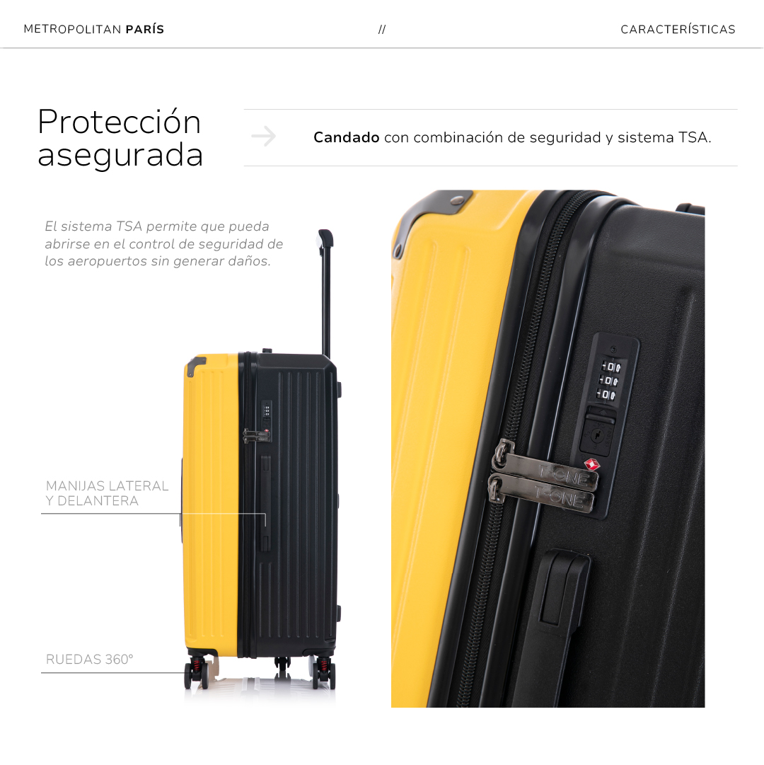 • Topes traseros para apoyar la valija sin dañar la superficie.