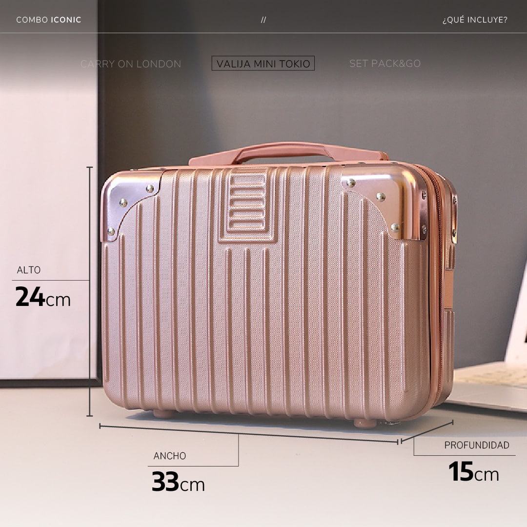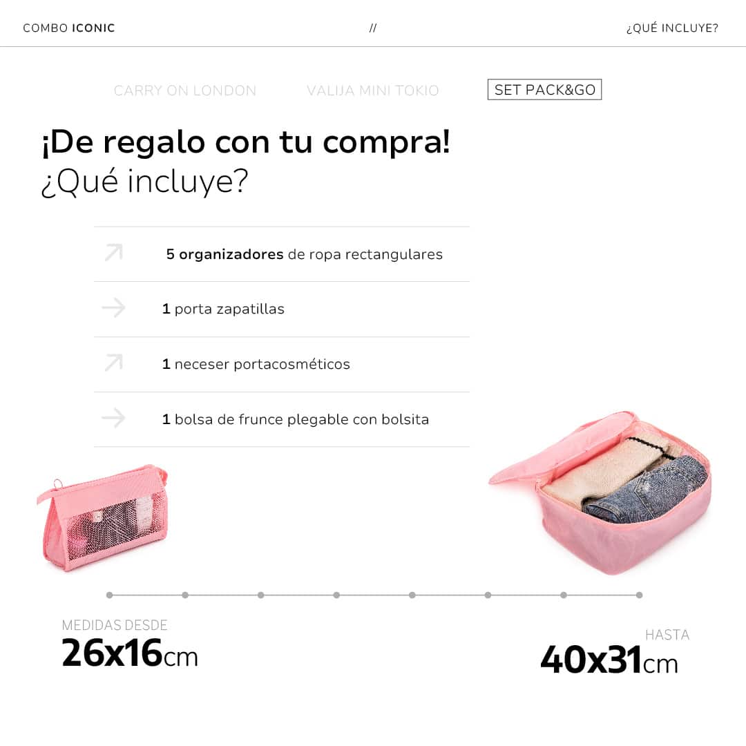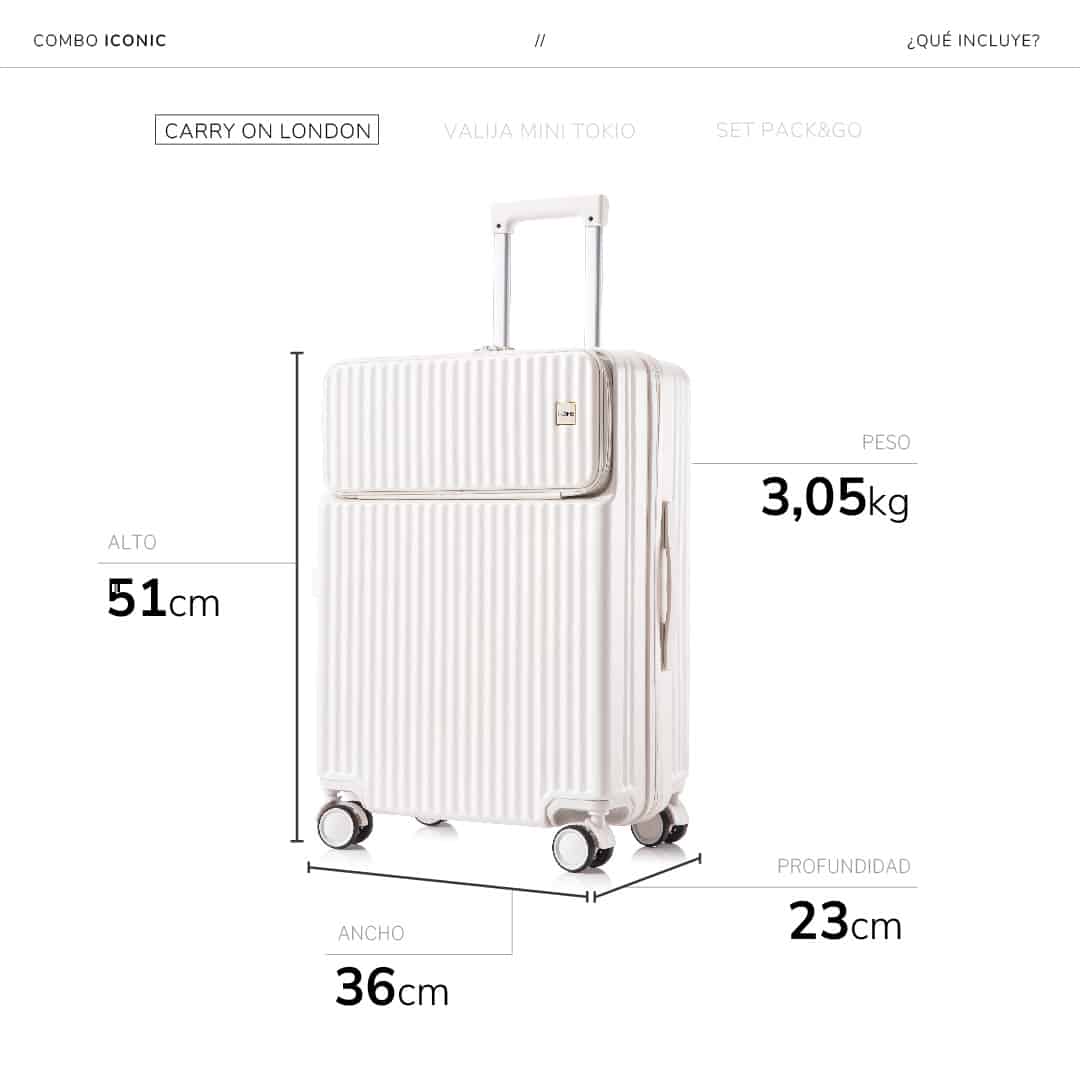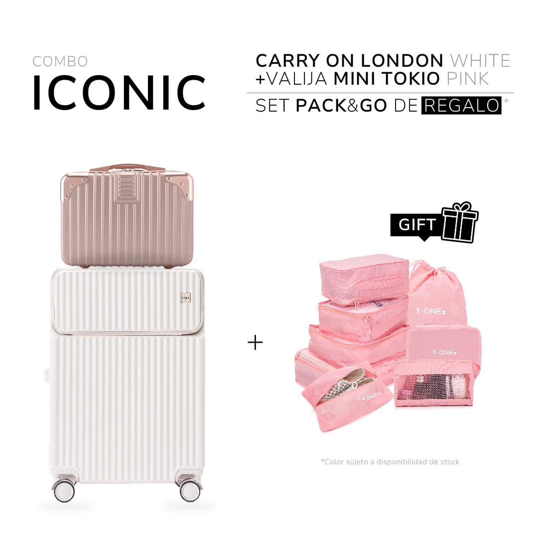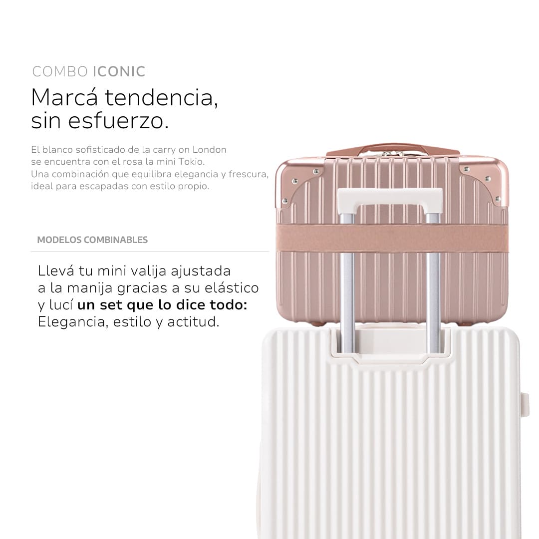 Set Iconic Valija Carry On London White + Valija Mini Tokio Pink + Organizador de regalo