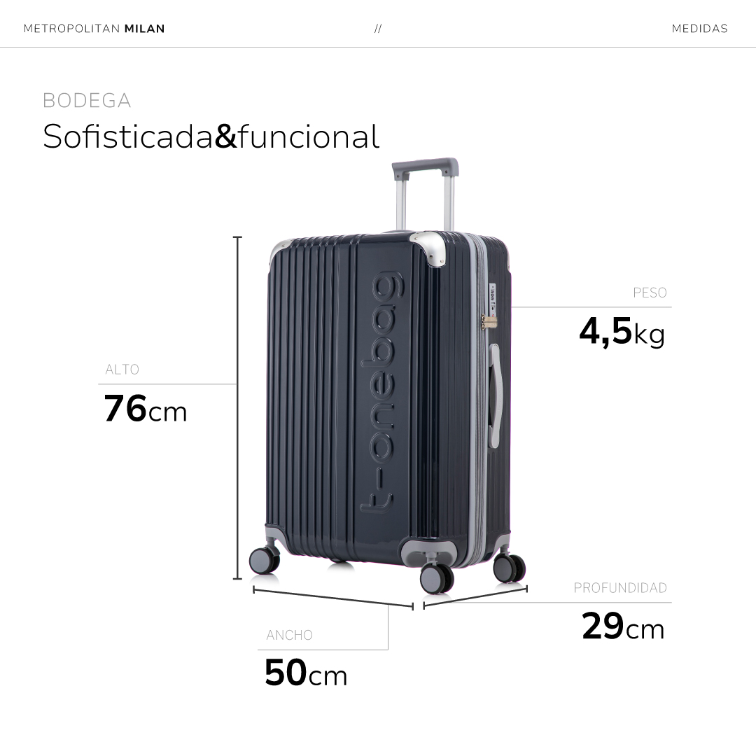 La Milán Bodega está diseñada para quienes necesitan mayor capacidad sin renunciar al diseño. Su estructura robusta y elegante acabado brilloso hacen que cada trayecto sea una experiencia premium.