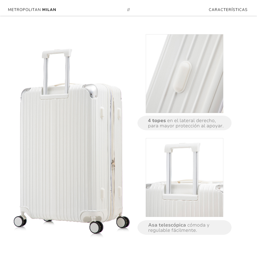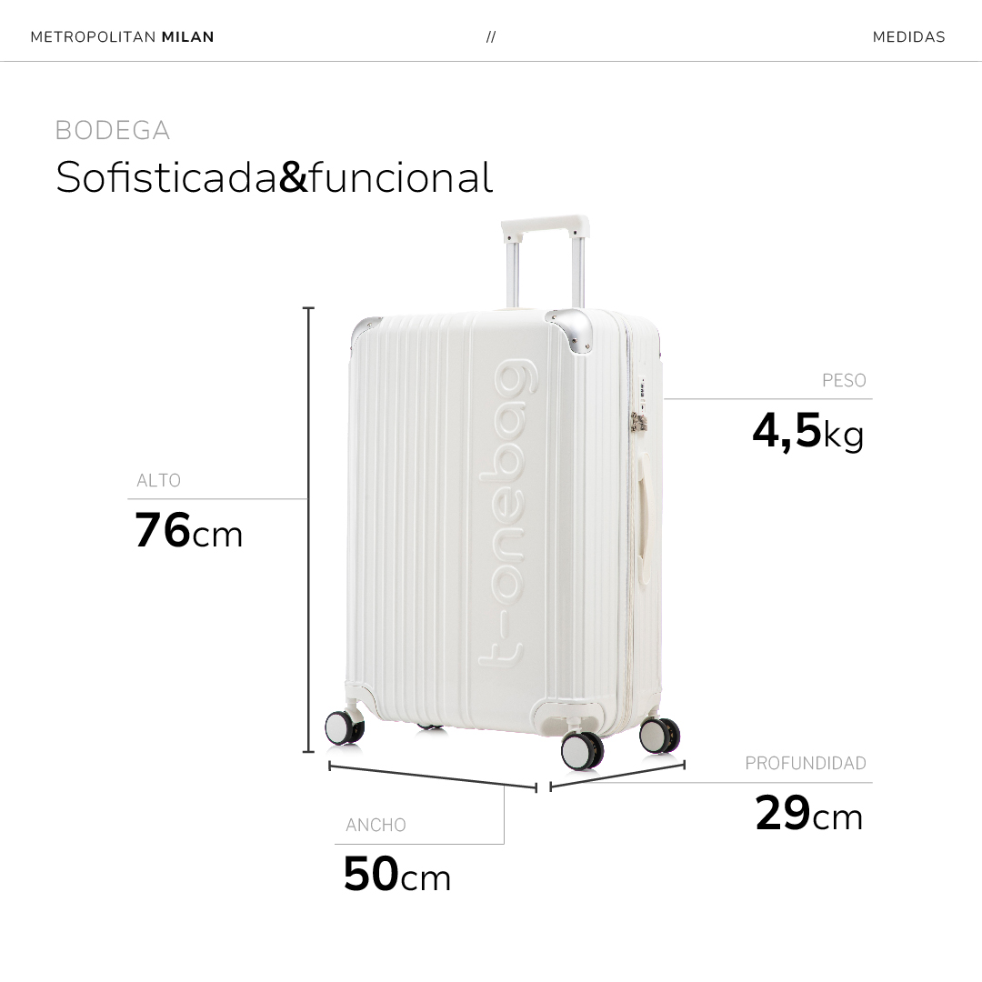 La Milán Bodega está diseñada para quienes necesitan mayor capacidad sin renunciar al diseño. Su estructura robusta y elegante acabado brilloso hacen que cada trayecto sea una experiencia premium.