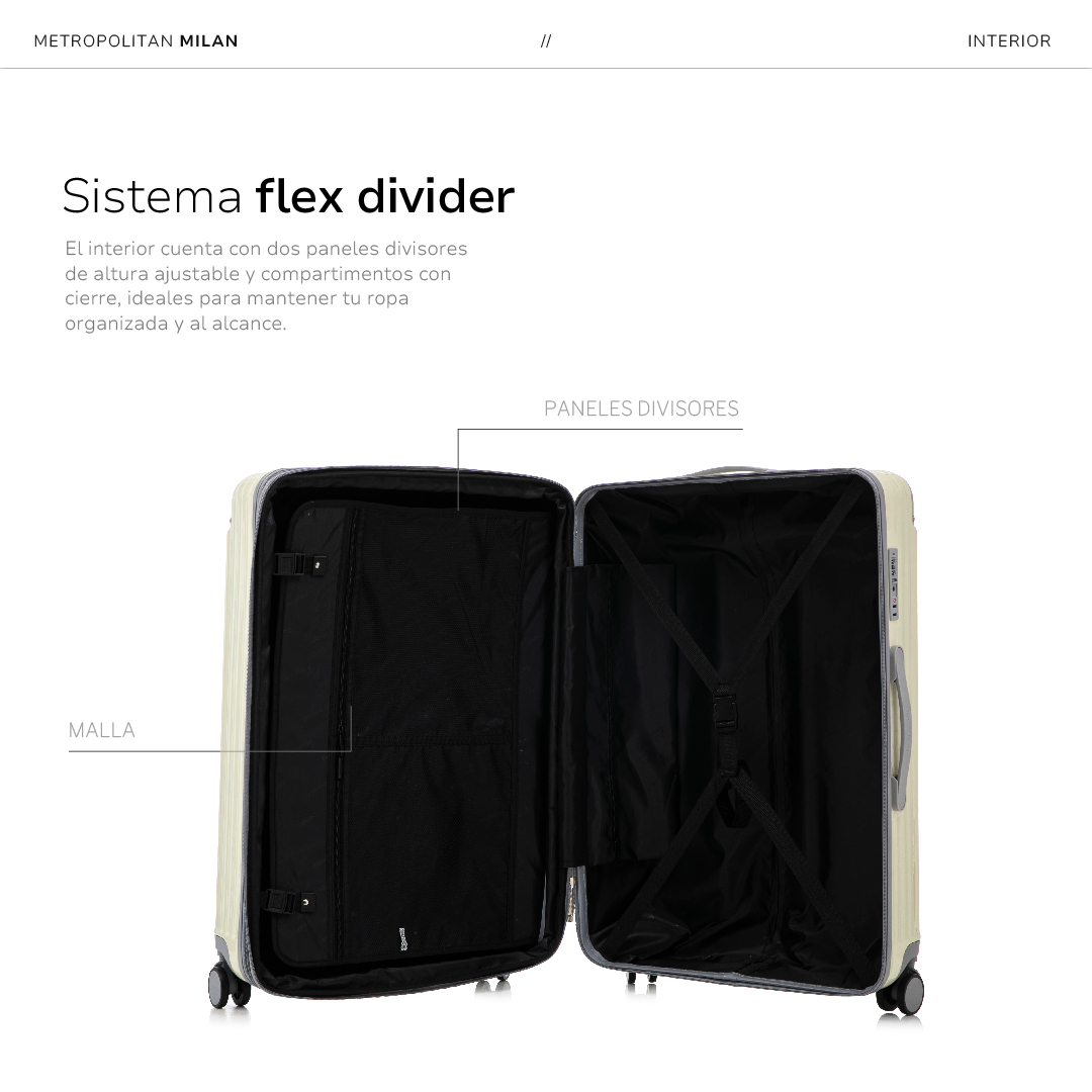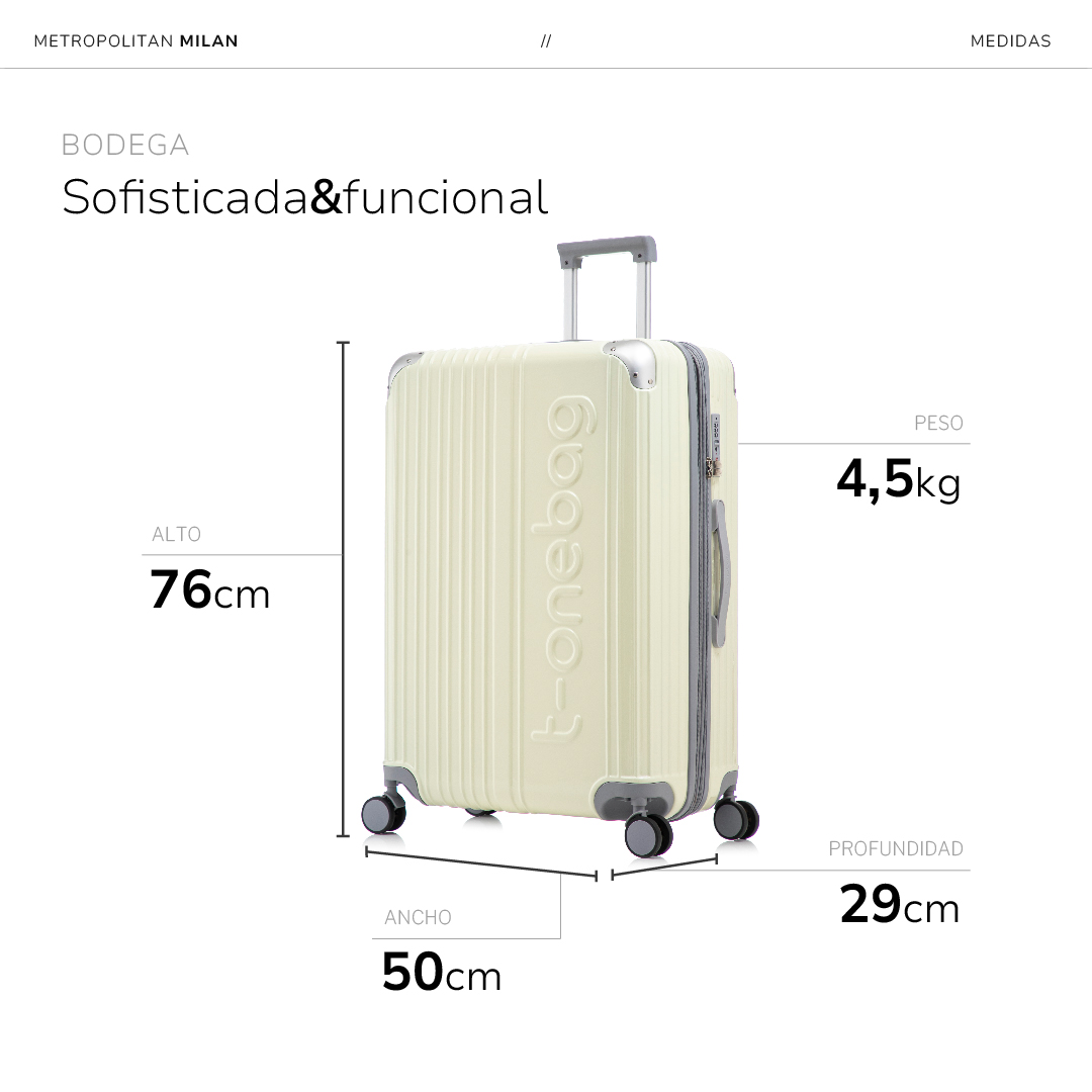 La Milán Bodega está diseñada para quienes necesitan mayor capacidad sin renunciar al diseño. Su estructura robusta y elegante acabado brilloso hacen que cada trayecto sea una experiencia premium.