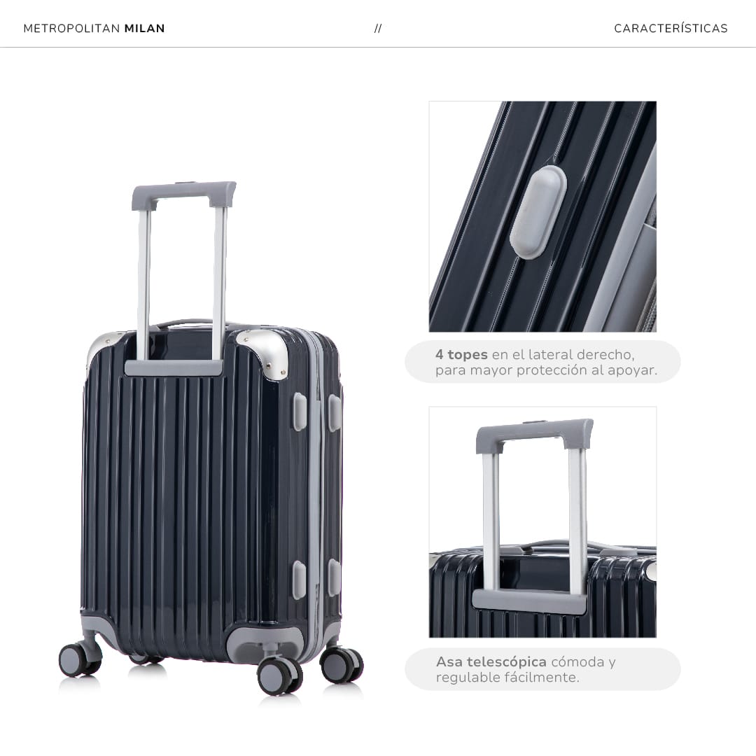 Inspirada en la capital global de la moda y el diseño, la valija Milán respiran estilo y modernidad. Con acabado brilloso y una paleta que refleja la esencia italiana, es el equilibrio perfecto entre estética y funcionalidad.