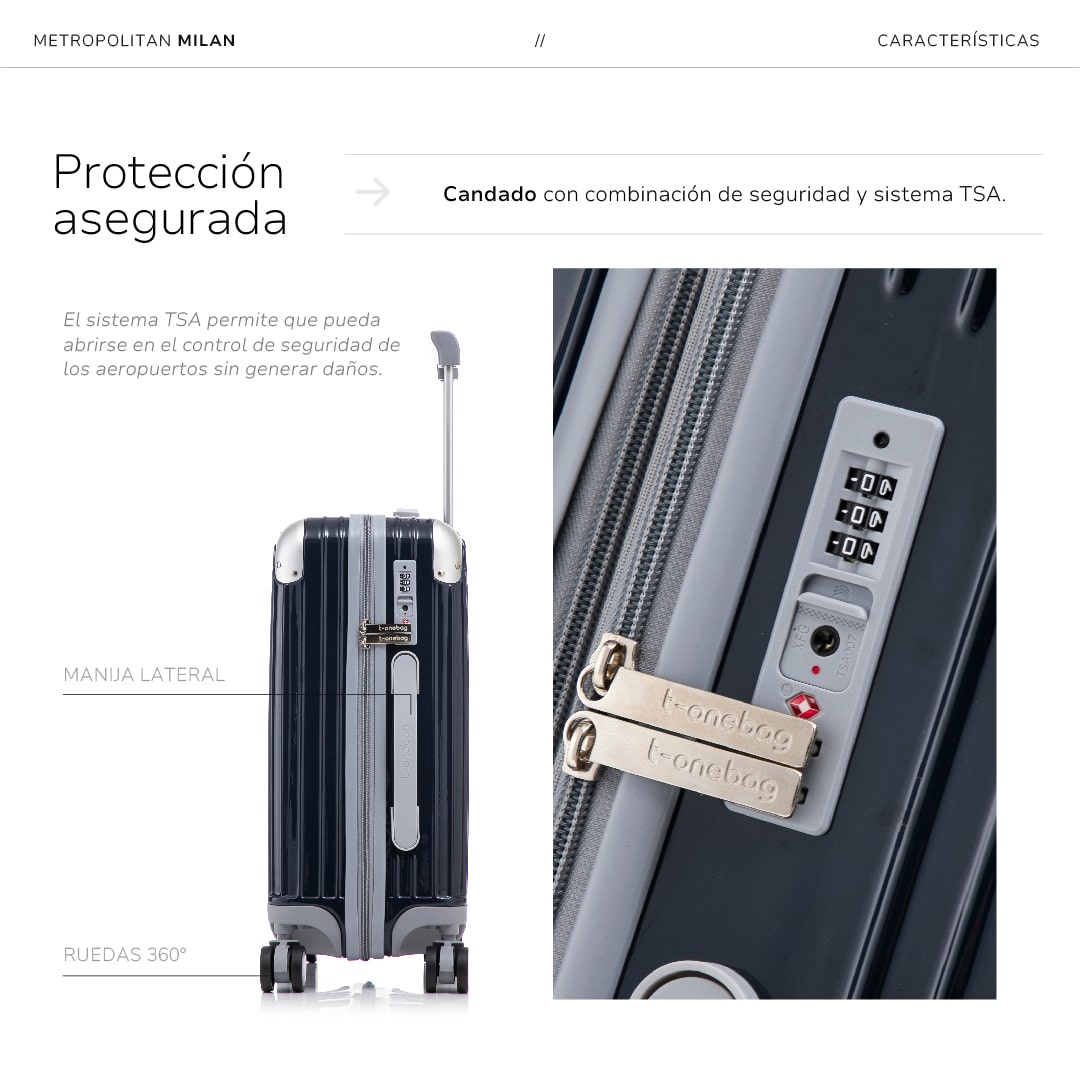 - Candado TSA integrado para máxima seguridad.