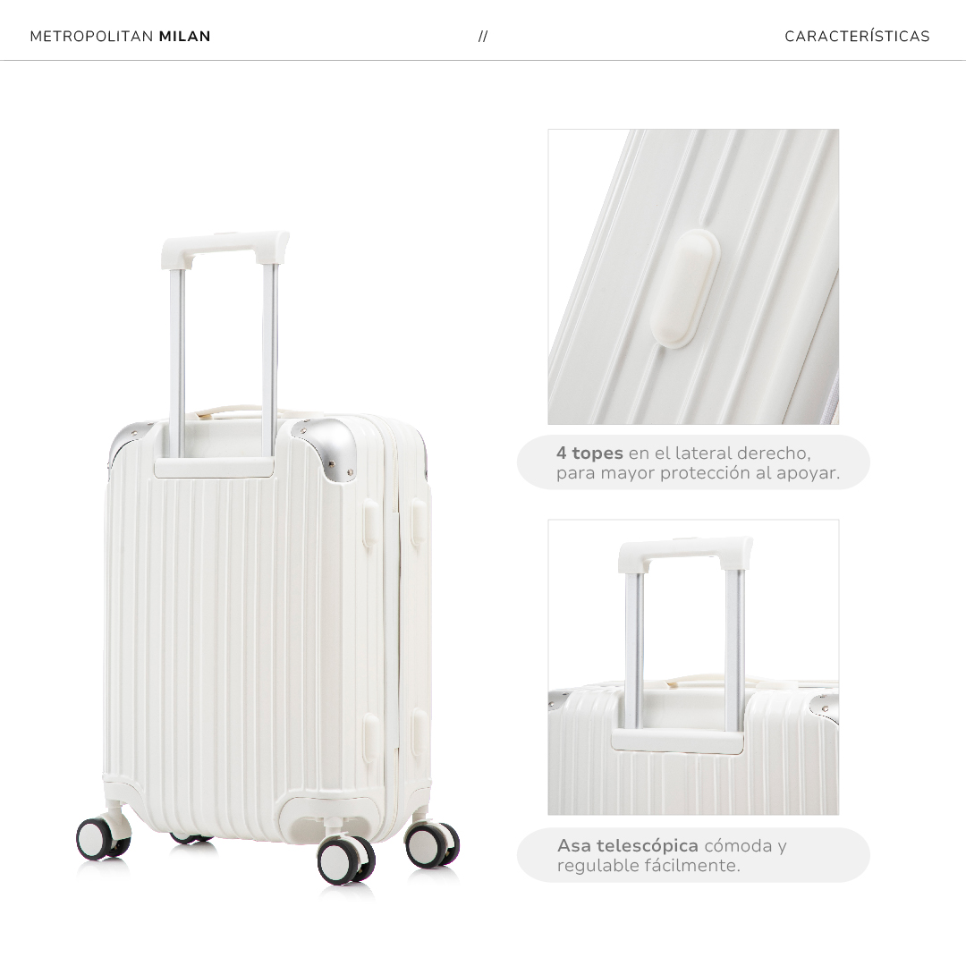 - Topes laterales para apoyar la valija sin rayarla.