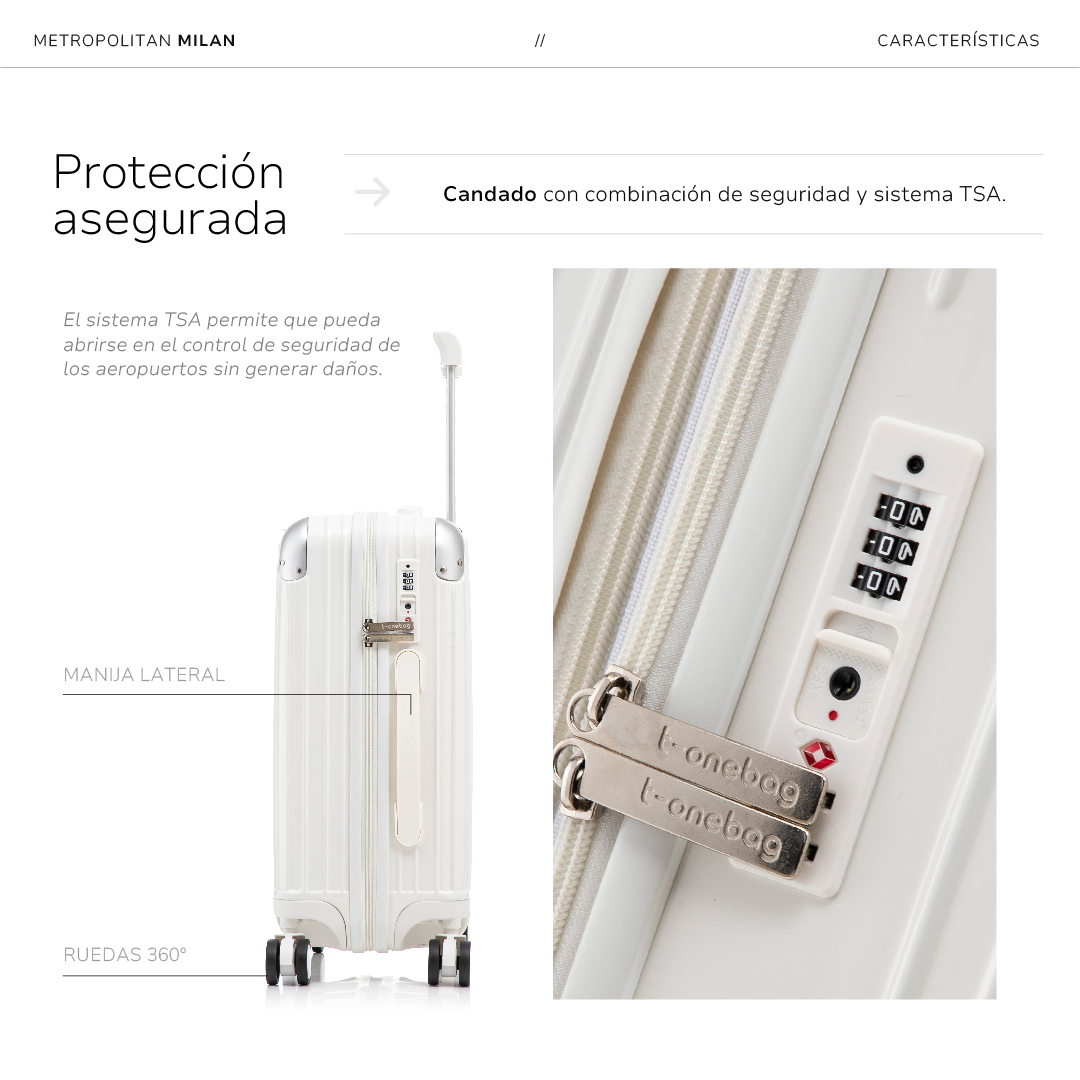 - Candado TSA integrado para máxima seguridad.