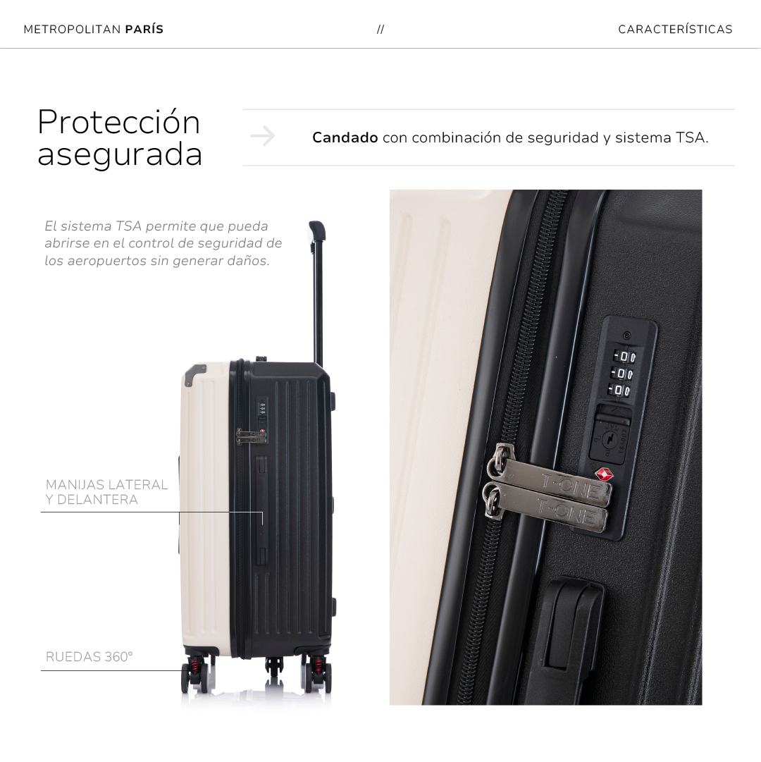Candados con combinación de seguridad y sistema TSA, el cual protege tus pertenencias y cumple con los estándares internacionales para controles aeroportuarios, evitando daños.