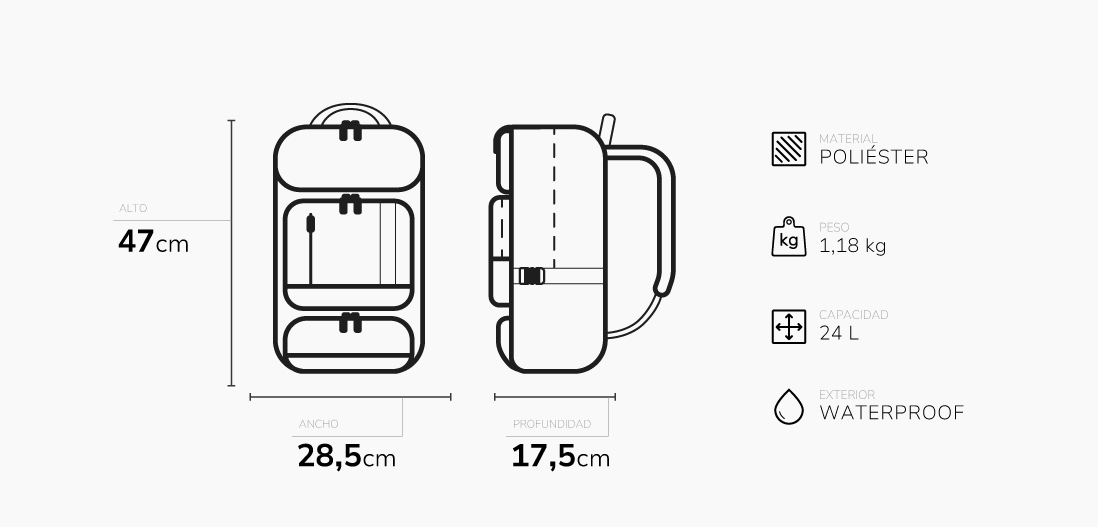 Su estructura amplia, el diseño ergonómico y los materiales impermeables de alta calidad la convierten en la aliada perfecta para profesionales, creativos y viajeros contemporáneos.