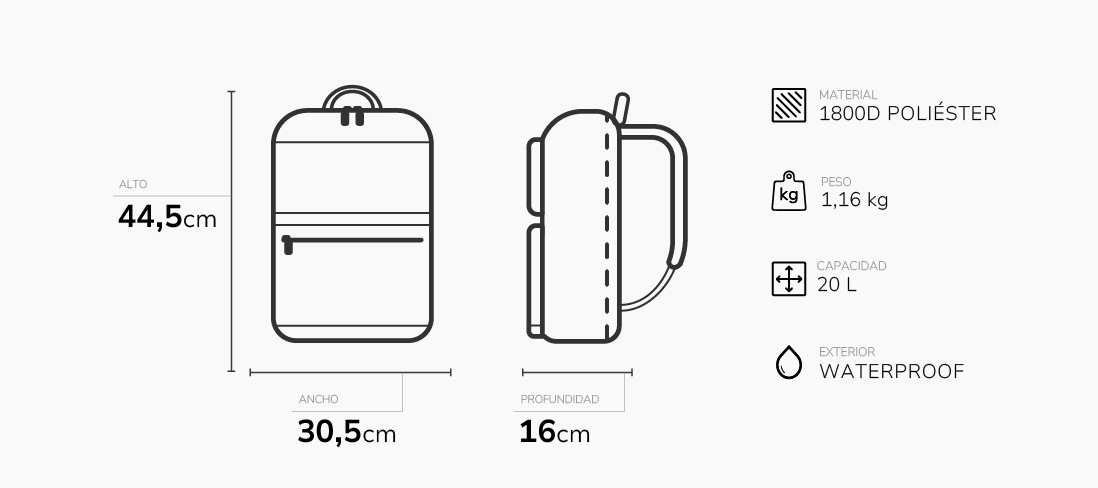 Move combina líneas minimalistas y una estética sobria y moderna sin sacrificar funcionalidad. Su confección en poliéster 1800D ofrece durabilidad y resistencia, con acabado waterproof para proteger lo que llevás en cualquier clima. Su estructura bien organizada permite un uso cómodo y eficiente todos los días.